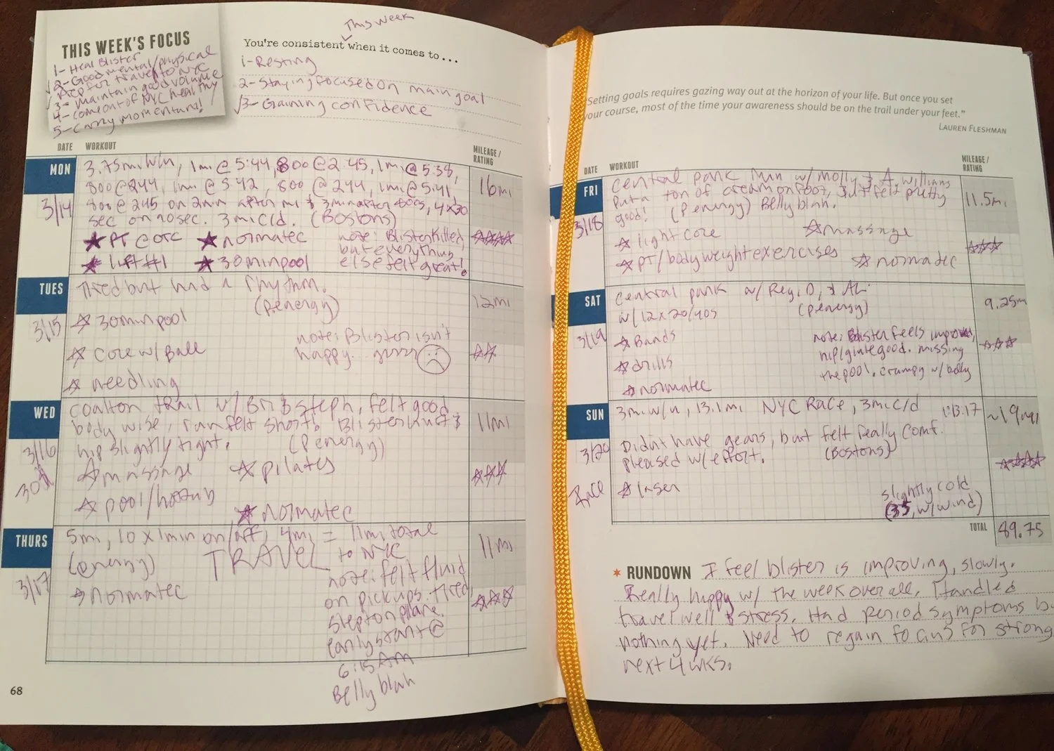 Am I sentimental? Absolutely. My grandfather calls me a historian. I like to record things, to have something to remember and call upon later. I have mentioned before that I keep a training log, an old fashioned, hand written, confusing-to-anyone-else documentary of my running. I have done so since 8th grade. This year was no different. Here is what I found upon my yearly review of 2016.